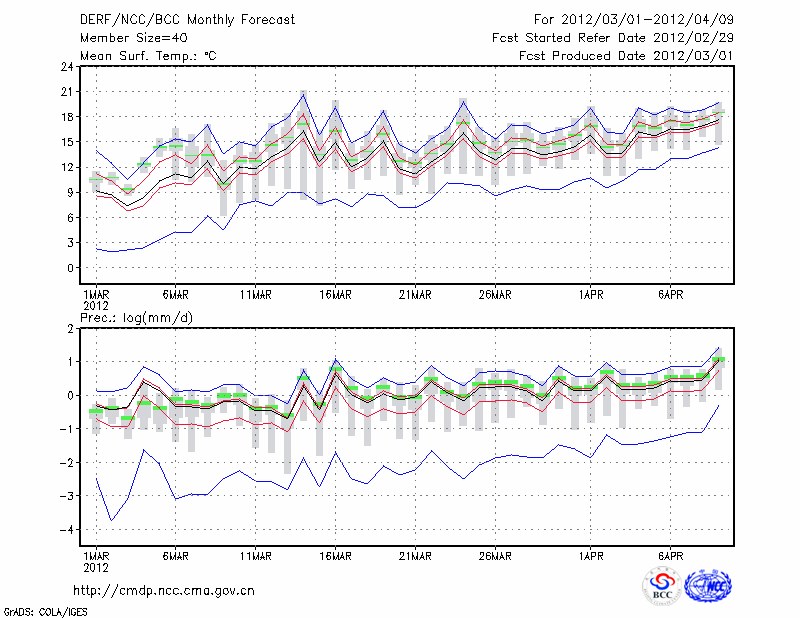 毕 节 (LAT:27.30 LON:105.23) 2012-03-01        预测