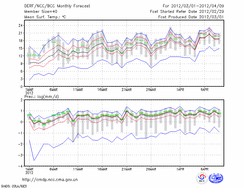芷 江 (LAT:27.45 LON:109.68) 2012-03-01        预测