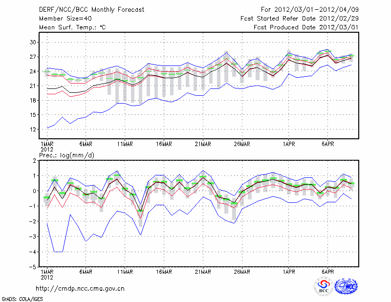 百 色 (LAT:23.90 LON:106.60) 2012-03-01        预测