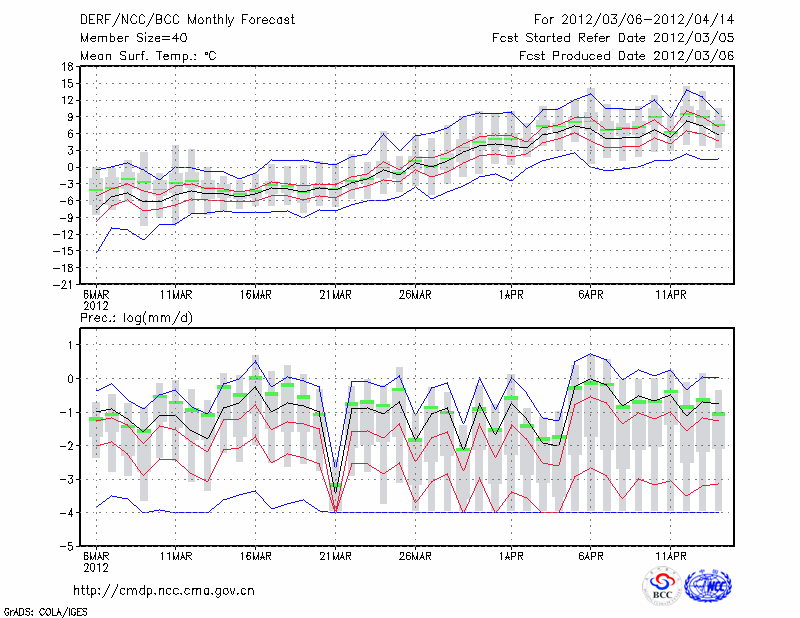 乌兰浩特 (LAT:46.08 LON:122.05) 2012-03-06        预测