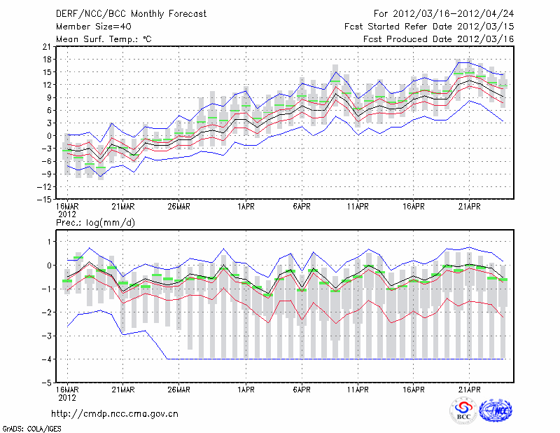 哈 尔 滨 (LAT:45.75 LON:126.77) 2012-03-16        预测