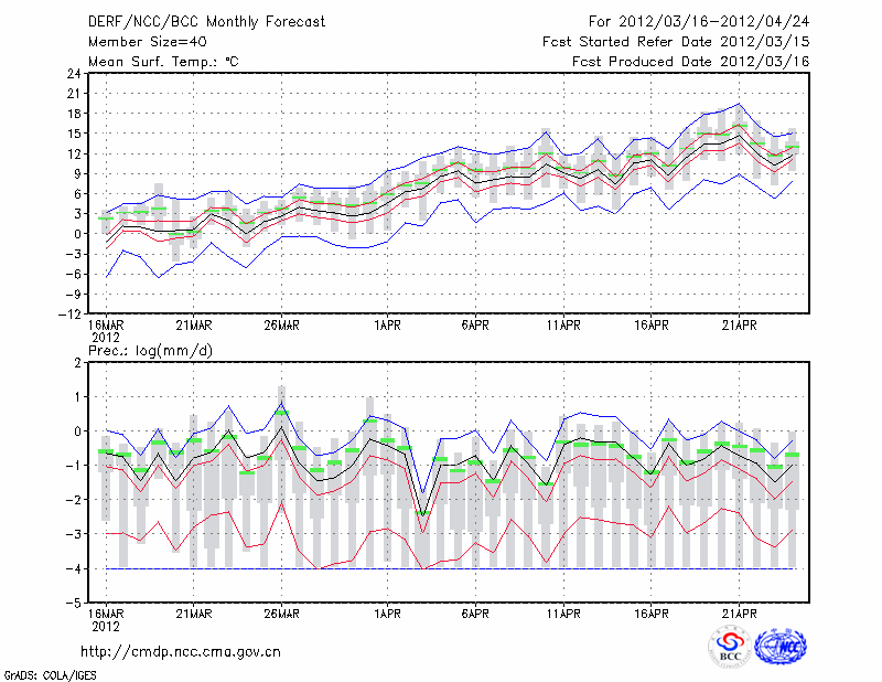 呼和浩特 (LAT:40.82 LON:111.68) 2012-03-16        预测