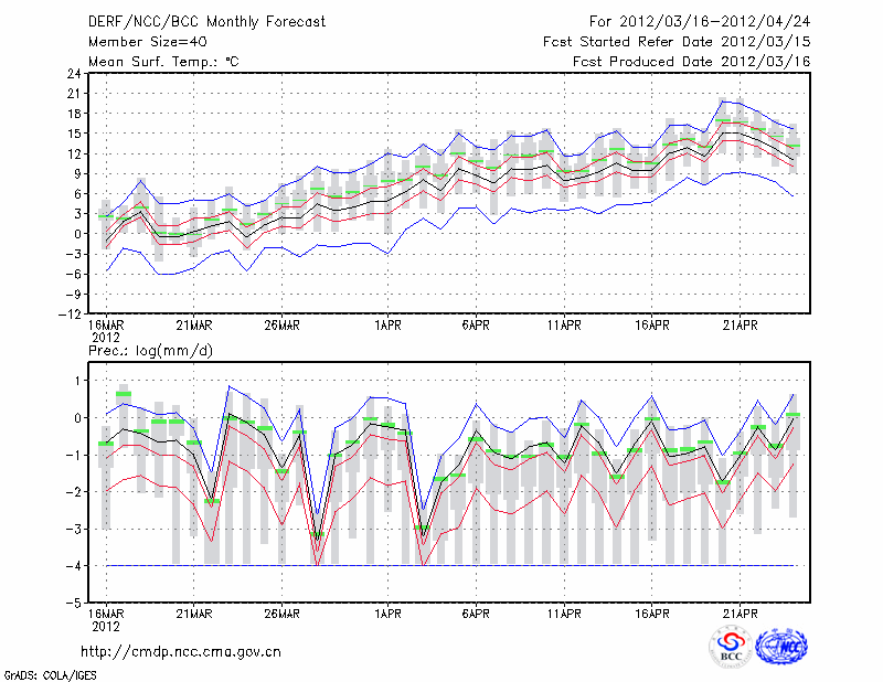 赤 峰 (LAT:42.27 LON:118.97) 2012-03-16        预测