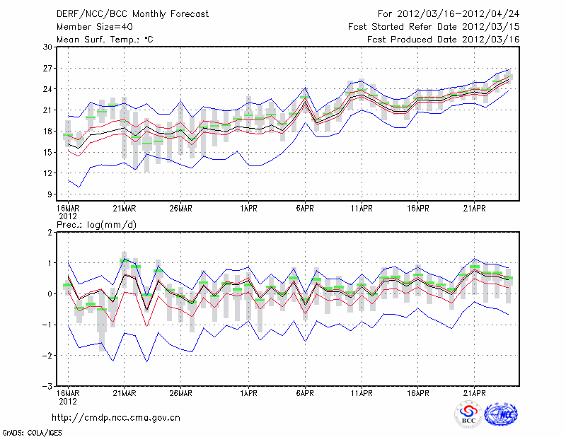 西 昌 (LAT:27.90 LON:102.27) 2012-03-16        预测
