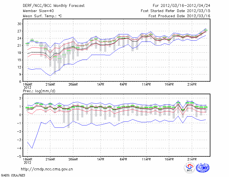 赣 州 (LAT:25.85 LON:114.95) 2012-03-16        预测