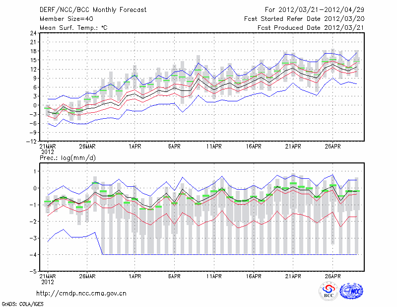 哈 尔 滨 (LAT:45.75 LON:126.77) 2012-03-21        预测
