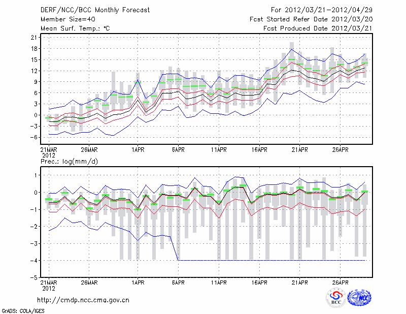 牡 丹 江 (LAT:44.57 LON:129.60) 2012-03-21        预测