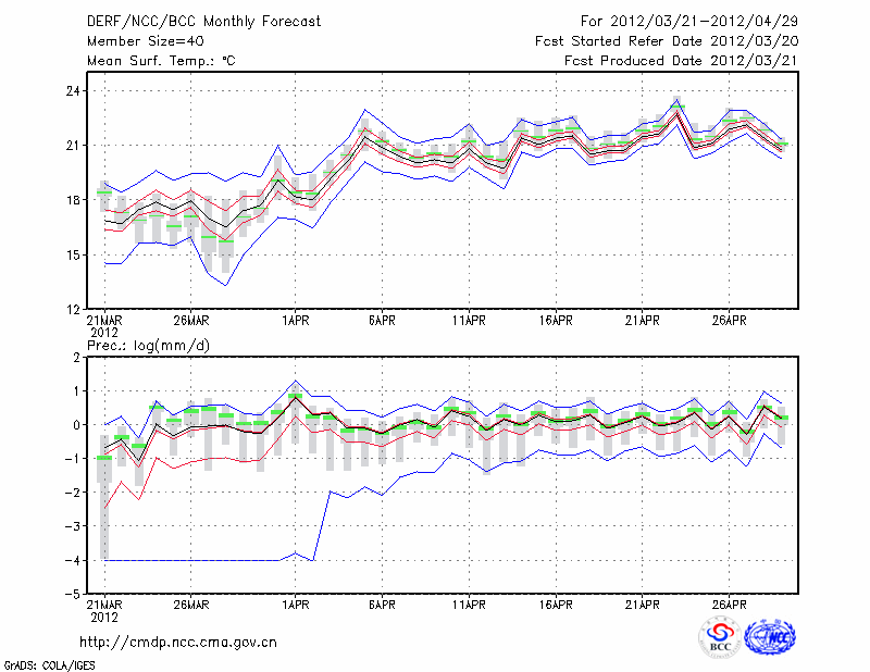 临 沧 (LAT:23.95 LON:100.22) 2012-03-21        预测