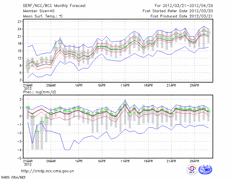 钟 祥 (LAT:31.17 LON:112.57) 2012-03-21        预测