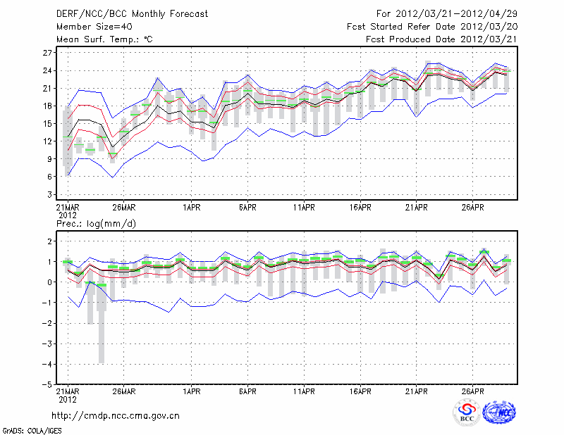 芷 江 (LAT:27.45 LON:109.68) 2012-03-21        预测