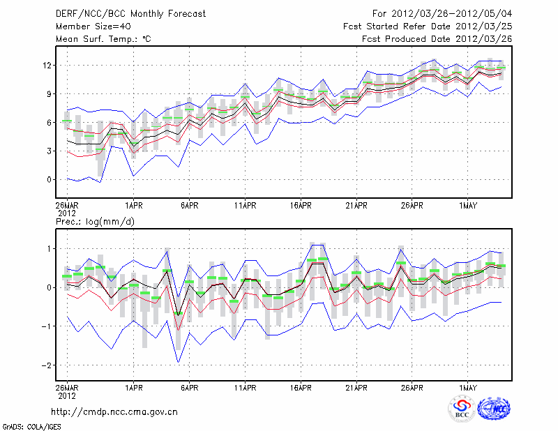 甘 孜 (LAT:31.62 LON:100.00) 2012-03-26        预测