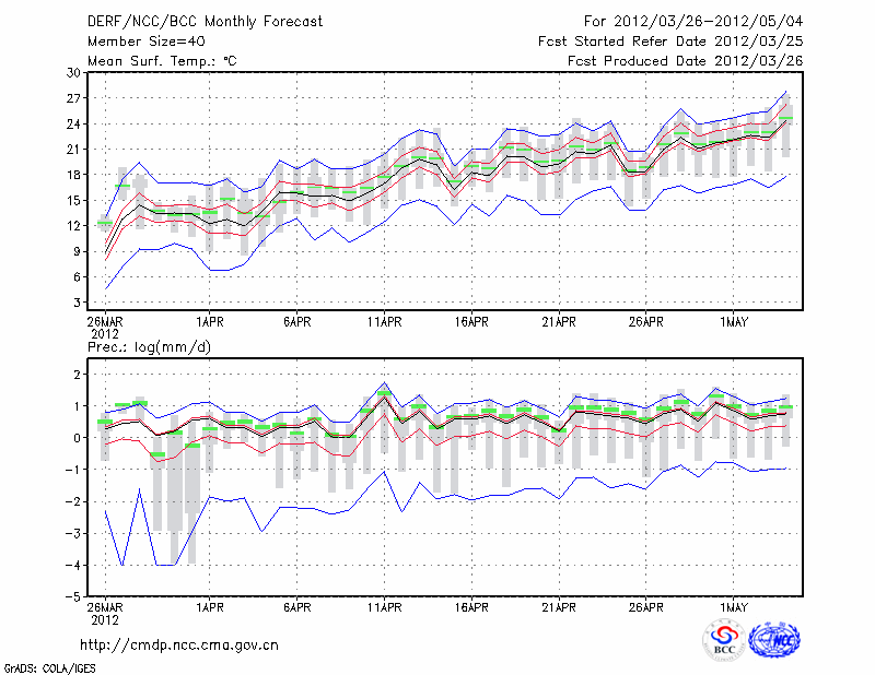 钟 祥 (LAT:31.17 LON:112.57) 2012-03-26        预测