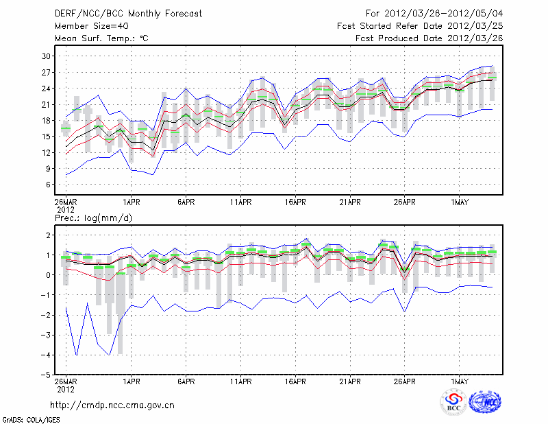 岳 阳 (LAT:29.38 LON:113.08) 2012-03-26        预测