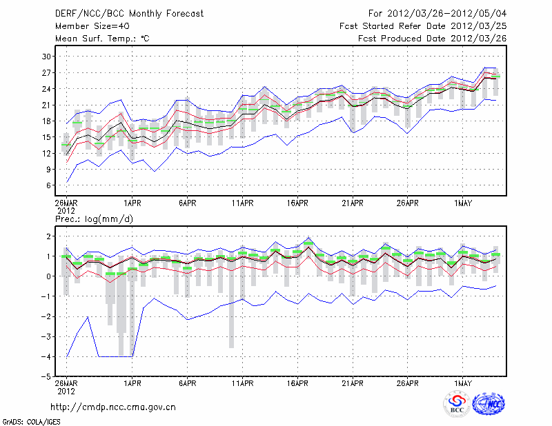 南 昌 (LAT:28.60 LON:115.92) 2012-03-26        预测