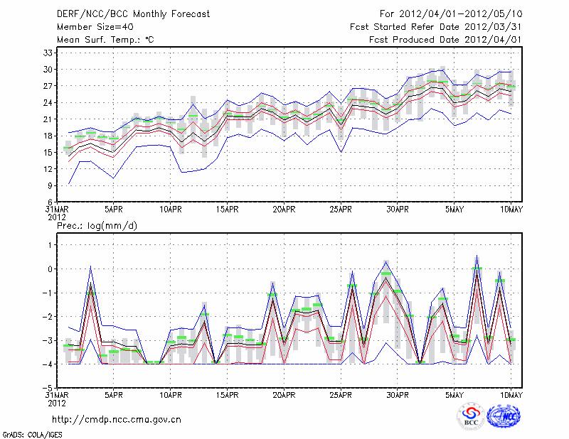 吐 鲁 番 (LAT:42.93 LON:89.20) 2012-04-01        预测