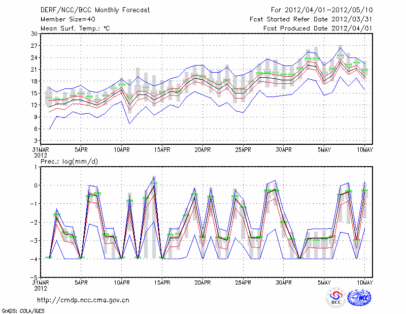 若 羌 (LAT:39.03 LON:88.17) 2012-04-01        预测