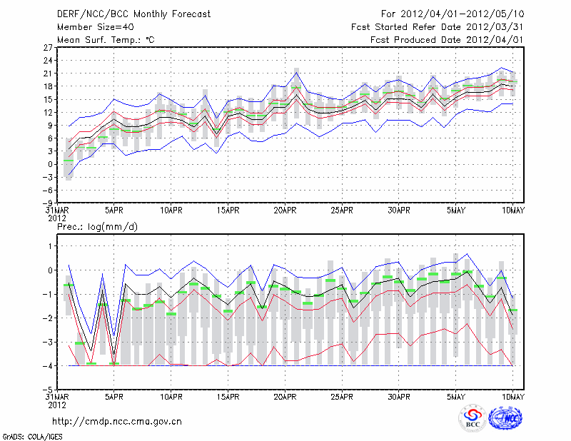 包 头 (LAT:40.66 LON:109.85) 2012-04-01        预测