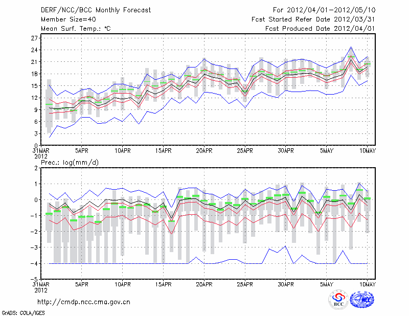 延 安 (LAT:36.60 LON:109.50) 2012-04-01        预测