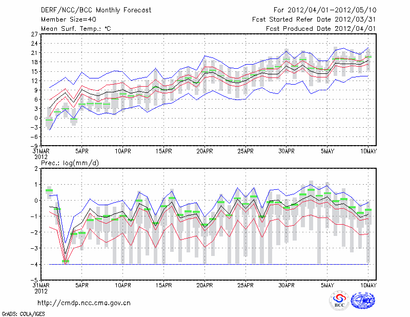 赤 峰 (LAT:42.27 LON:118.97) 2012-04-01        预测