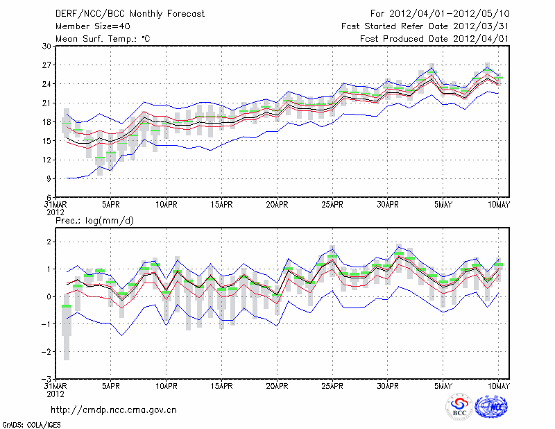 雅 安 (LAT:29.98 LON:103.00) 2012-04-01        预测