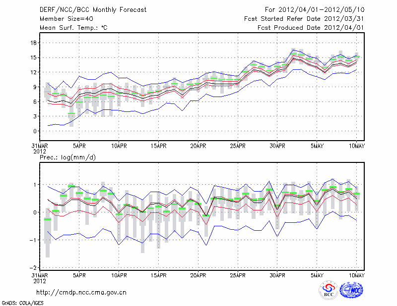 康 定 (LAT:30.05 LON:101.97) 2012-04-01        预测