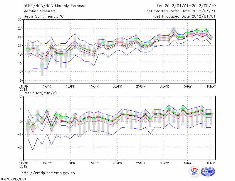 西 昌 (LAT:27.90 LON:102.27) 2012-04-01        预测