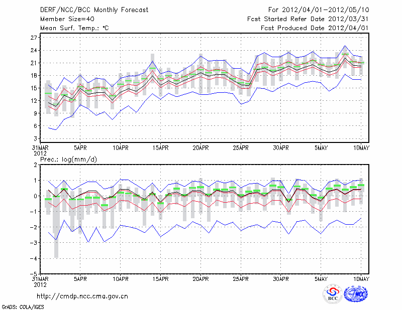 西 安 (LAT:34.30 LON:108.93) 2012-04-01        预测