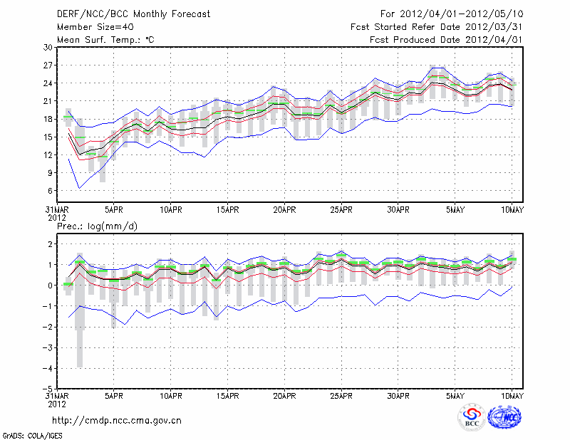恩 施 (LAT:30.28 LON:109.47) 2012-04-01        预测