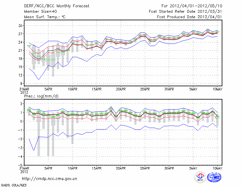 赣 州 (LAT:25.85 LON:114.95) 2012-04-01        预测