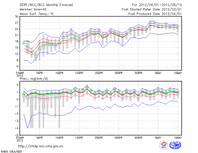 南 昌 (LAT:28.60 LON:115.92) 2012-04-01        预测