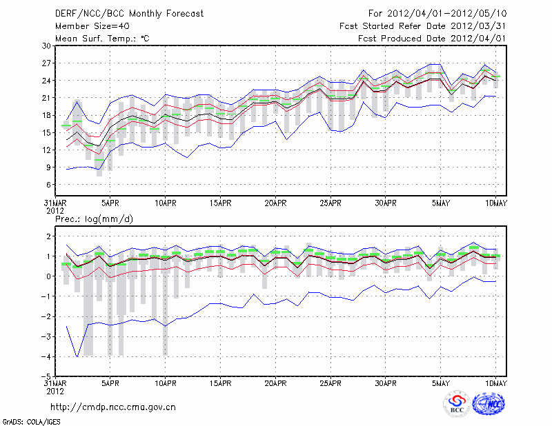衢 县 (LAT:28.97 LON:118.87) 2012-04-01        预测