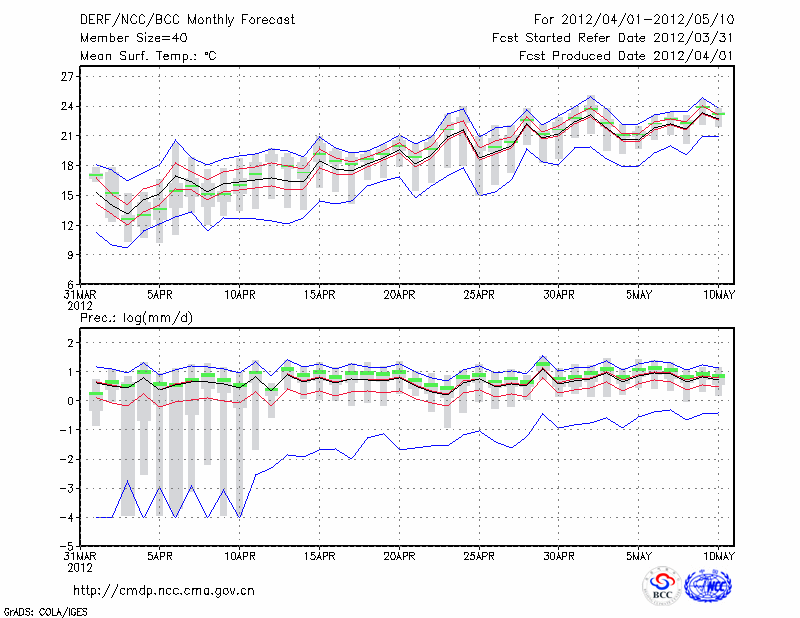 温 州 (LAT:28.02 LON:120.67) 2012-04-01        预测