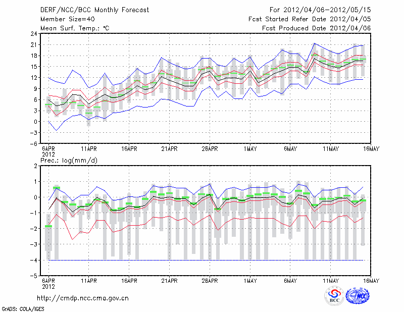 哈 尔 滨 (LAT:45.75 LON:126.77) 2012-04-06        预测