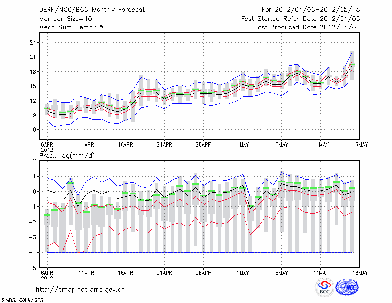 青 岛 (LAT:36.07 LON:120.33) 2012-04-06        预测