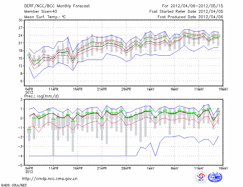 蚌 埠 (LAT:32.95 LON:117.37) 2012-04-06        预测