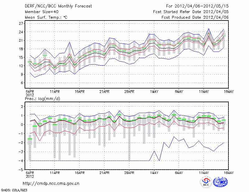 东 台 (LAT:32.87 LON:120.32) 2012-04-06        预测
