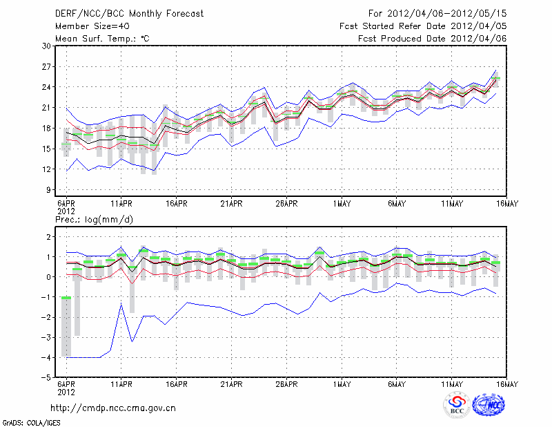 温 州 (LAT:28.02 LON:120.67) 2012-04-06        预测