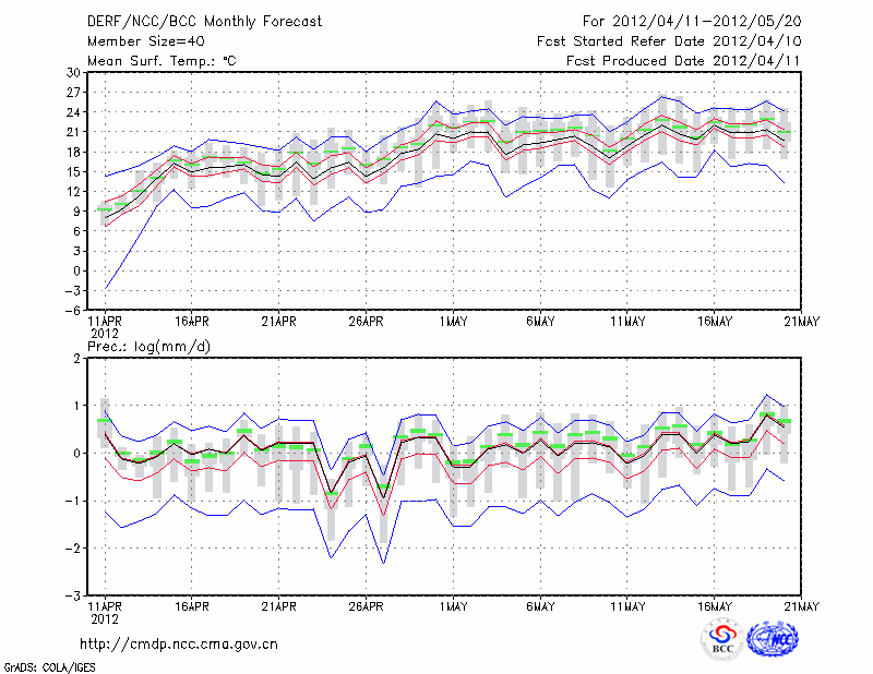 乌 苏 (LAT:44.43 LON:84.66) 2012-04-11        预测