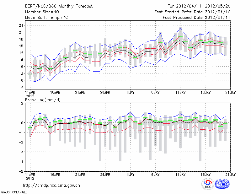 牡 丹 江 (LAT:44.57 LON:129.60) 2012-04-11        预测