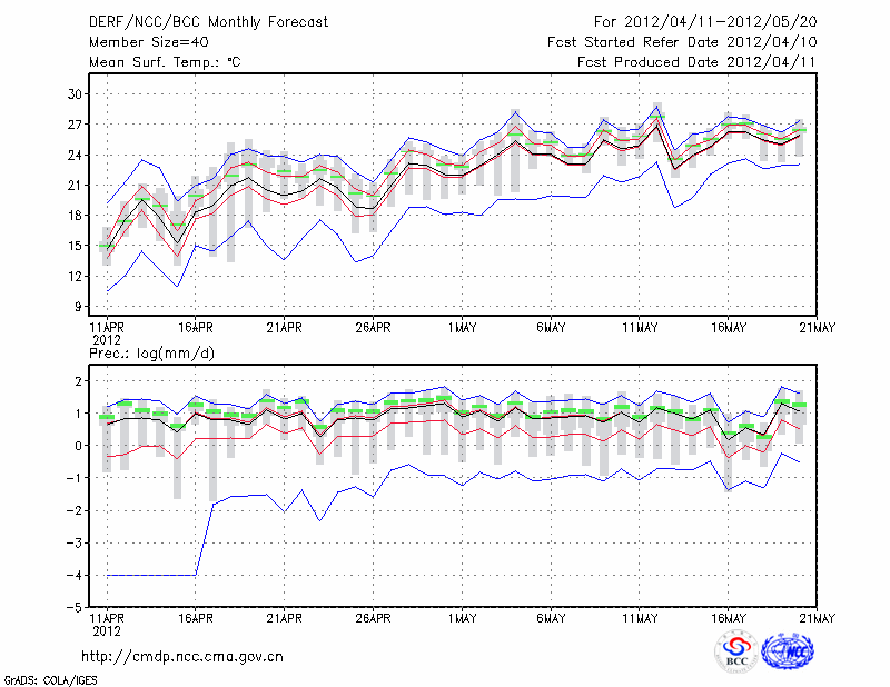 安 庆 (LAT:30.53 LON:117.05) 2012-04-11        预测