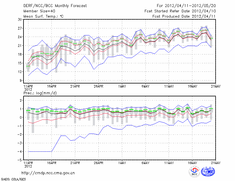 杭 州 (LAT:30.23 LON:120.17) 2012-04-11        预测