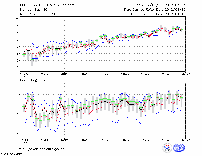甘 孜 (LAT:31.62 LON:100.00) 2012-04-16        预测