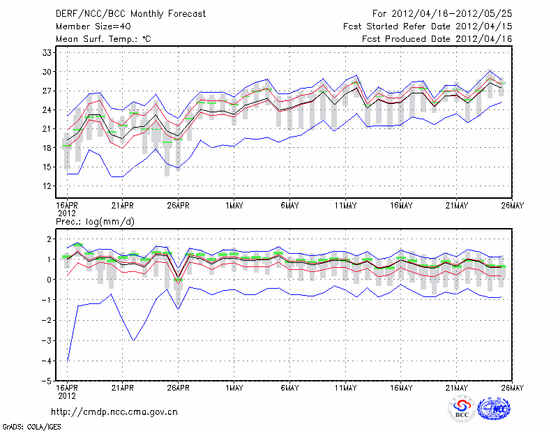 岳 阳 (LAT:29.38 LON:113.08) 2012-04-16        预测