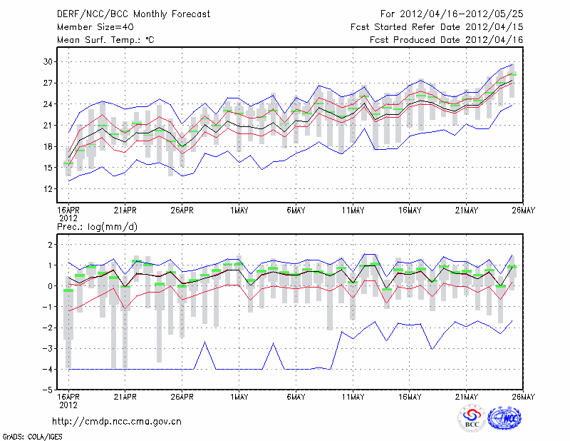蚌 埠 (LAT:32.95 LON:117.37) 2012-04-16        预测