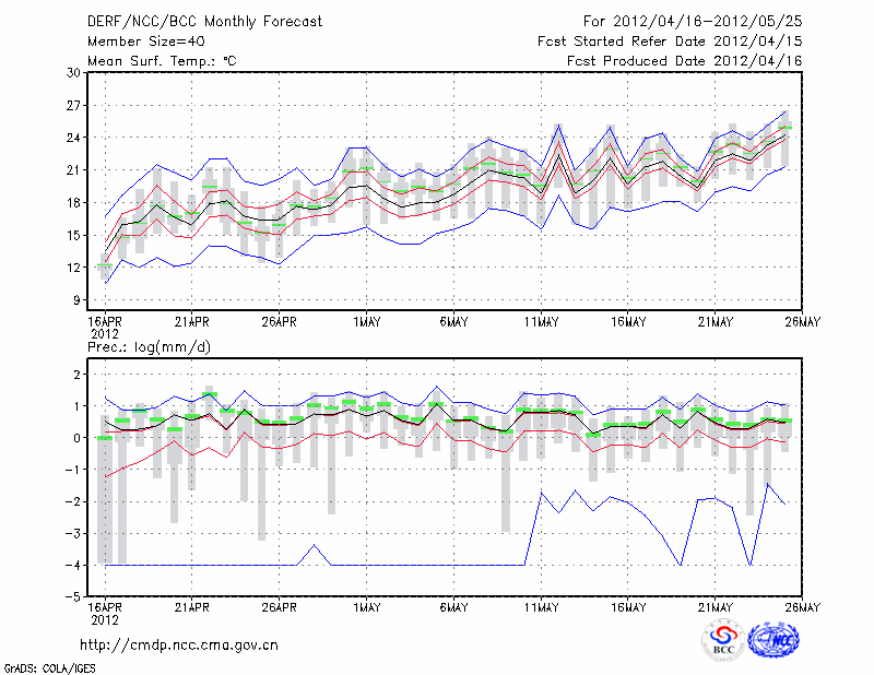 东 台 (LAT:32.87 LON:120.32) 2012-04-16        预测