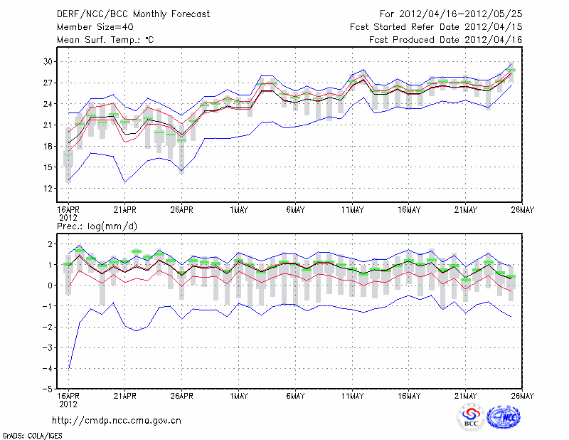 南 昌 (LAT:28.60 LON:115.92) 2012-04-16        预测