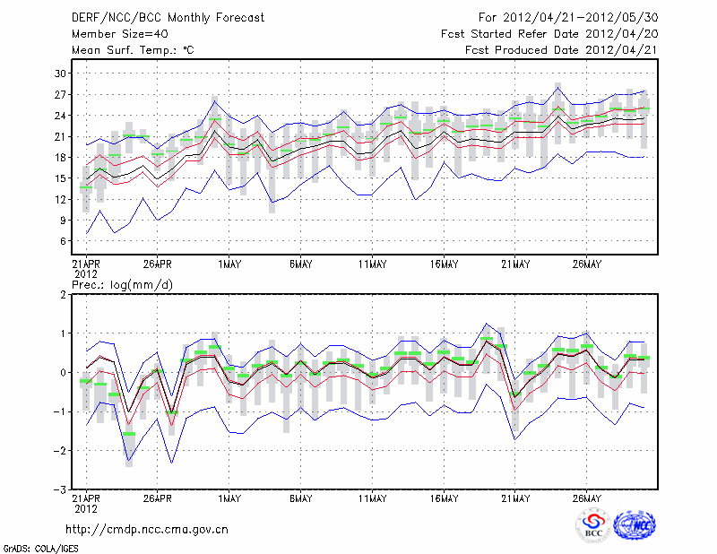 乌 苏 (LAT:44.43 LON:84.66) 2012-04-21        预测