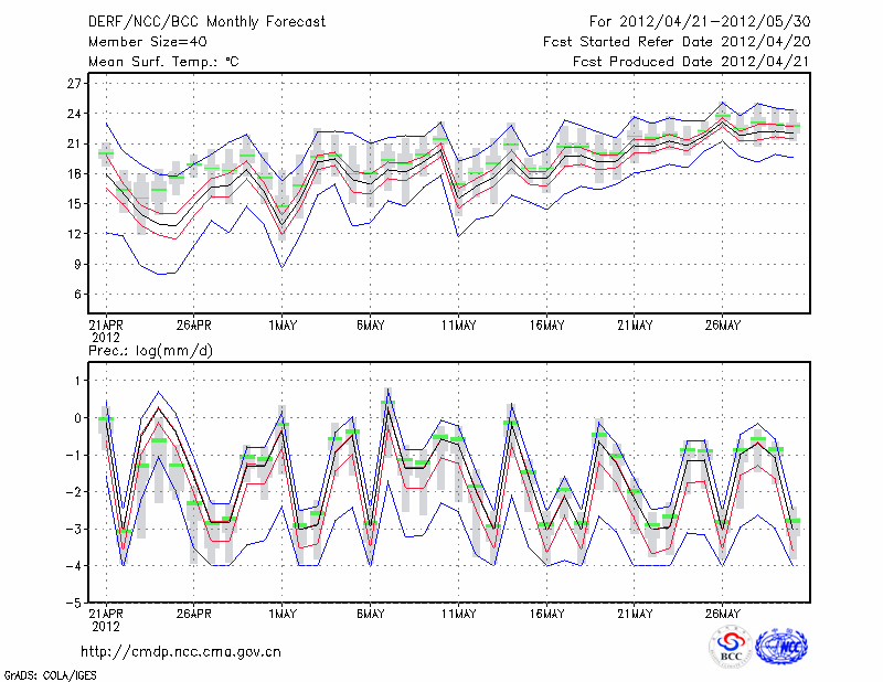且 末 (LAT:38.15 LON:85.55) 2012-04-21        预测