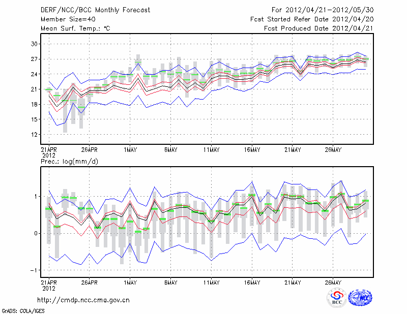 西 昌 (LAT:27.90 LON:102.27) 2012-04-21        预测