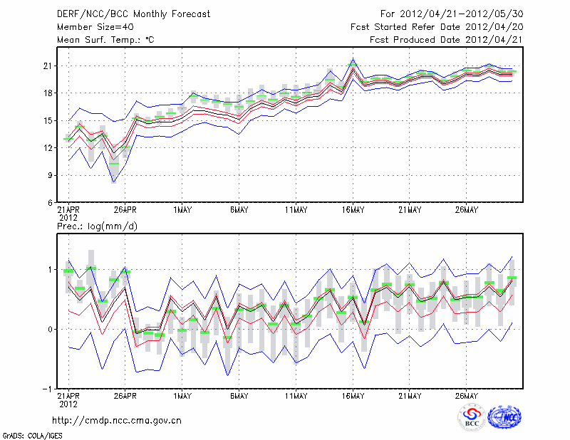 丽 江 (LAT:26.83 LON:100.47) 2012-04-21        预测